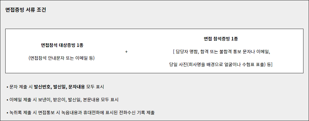 단, 면접 확인서 발급이 불가한 경우 면접 확인서 대체 서약서와 면접 증빙 서류를 제출해야 한다.